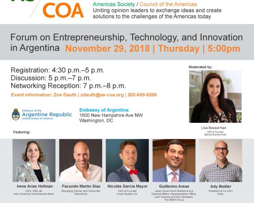 This forum hosted by Young Professionals of the Americas (YPA) will showcase Argentina’s entrepreneurial potential to key...